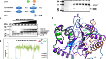 In vitro protein binding assay was performed as previously described34. Tested protein and peptide-encoding sequences were cloned into the pGEX4T-1 vector and these recombinant plasmids were mobilized in E. coli strain BL21 (DE3) for prokaryotic expression. GST fusion proteins/peptides were produced and purified with the anti-GST affinity gel (Smart Lifesciences, Changzhou, China). GST tag was then removed from fusion proteins/peptides by thrombin digestion. Finally, proteins and peptides were mixed in the reaction mixture and incubated at 25 °C for 1 h. These samples were run on a 10% native polyacrylamide gel electrophoresis for checking whether the electrophoretic migration of proteins is affected.