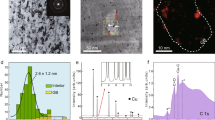 Molecular dynamics simulations were performed using large-scale atomic/molecular massively parallel simulator43 software to examine the interactions between dislocations and B4C nanoparticles during deformation. The Cu–Cu interaction was described by the embedded atom method potential44. The Stillinger–Weber (SW) potential was adopted for B–B, C–C and B–C interactions45. The Lennard‒Jones potential was used for Cu–B46,47 and Cu–C interactions48. The radii of the ANPs and CNPs were set to 3 nm, and the particles were embedded in a copper matrix with preexisting edge dislocations of \(\,{{{\boldsymbol{b}}}}={{{{\rm{a}}}}}_{0}/2\,[10\bar{1}]\) on the {111} plane. Crystalline B4C with a C–B–C chain was chosen for the structures of the CNPs. ANP was generated by packing B11C clusters and C–B–C chains and relaxed using the SW potential45. The simulation cell was oriented with the X, Y and Z directions aligning along the \([10\bar{1}]\), \([1\bar{2}1]\), and [111] directions of the copper matrix. The simulation cells were 38.2, 22.1 and 25.0 nm in length along the X, Y and Z directions, respectively, with ~1.7 million atoms. The time step in the simulation was 2 fs. After the B4C nanoparticles were embedded in the copper matrix, the simulation cell was optimized using the conjugate gradient method and subsequently held at 10 K for 30,000 steps. Then, the upper and lower regions with thicknesses of 5 atomic layers were selected and moved along the positive and negative X directions, respectively, at a fixed velocity. The rate of applied shear strain was 107 s−1. The open visualization tool package49 was adopted to produce the von Mises equivalent atomic strain map and visualize the atomic structures, as shown in Fig. 4e, f.