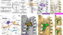 A plot of the B-factor changes across the individual amino acids in each structure reveals that the changes are more prominent in the BchN/BchN′ subunit compared to BchB/BchB′ (Fig. 2D, E). Moreover, these changes are enhanced in the Pchlide-bound BchNB structure, suggesting that asymmetry is further selectively imprinted by Pchlide binding. The differences are also noticeable when the root mean square deviation (RMSD) values between the two halves in the structures are compared (Supplementary Fig. 3). In both the Pchlide-bound and apo-NB-protein structures, there is a noticeable ~ 0.6 Å difference between the two halves, suggesting an intrinsic asymmetry within the NB-protein. The conformational movements are marginally higher in the Pchlide-bound NB-protein structure compared to the apo-NB structure. Interestingly, in both structures, a path of dynamic changes can be traced from one half to the other and routes through the di-Cu site (Fig. 2B, C). To further probe these conformational changes, we reassessed the Pchlide-bound NB-protein structure using C2 symmetry with no relaxation. In this case, asymmetric dynamic changes between the two halves will be averaged. While the resolution of the structure marginally changed from 3.0 Å to 2.9 Å, the path of dynamic changes passing through the di-Cu site was still prominent (Supplementary Fig. 3C). Collectively, these coarse-grain observations raise an intriguing possibility for the presence of an allosteric communication path between the two halves in the NB-protein. We recently uncovered evidence for such allosteric communication in DPOR using a half-reactive NB-protein where perturbation of substrate sensing within one half completely abolished ET and substrate reduction in the entire complex17.