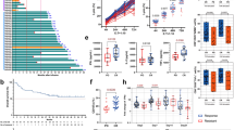 We set out to identify the molecular determinants underlying CD8+ CAR T cells at Texp and Tper using gene set enrichment analysis (GSEA), differential gene expression analysis (DGEA), and regulatory network analysis. For internal validation, the average expression of timepoint-specific genes (see Methods) for each sample (patient by timepoint) were hierarchically clustered and compared via correlation (Fig. 4a). Samples largely clustered by timepoint, validating the existence of patient-independent molecular signatures. We then validated our dataset against external data from Maus et al., which consisted of CD8+ CAR T cells from patients with large B-cell lymphoma (Fig. 4a, b, colored in tan and brown, six in total after filtering)27. Based on their sample collection timing (day 7), external data from Maus et al. should resemble our samples at Texp, rather than at Tper. Consistent with expectations, external data resembled Texp transcriptomes on both pseudo-bulk (Fig. 4a, via correlation) and single-cell (Fig. 4b, via label transfer) levels, which increases the external validity of our findings.
