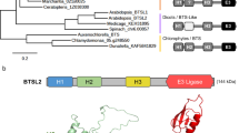 We then examined whether the bts-r mutant could resist iron deficiency. Under Fe-deficient conditions, unlike bts-2, the bts-r developed shorter roots, leaf chlorosis, and lower chlorophyll concentration, which were comparable to Col-0 (Fig. 2c–f), indicating that bts-r was not able to resist iron deficiency. Iron concentration assays further revealed that the bts-r mutants did not have the extraordinarily high iron concentration as did in the bts-2 plants (Fig. 2g). These results indicated that the phenotypes of bts-2 under the conditions of iron deficiency and chilling stress were largely rescued by bts-r.