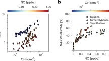 We further investigated the relationship between particulate matter ≤ 2.5 μm (PM2.5) and OPEs (Fig. 1b, c). The concentration of gaseous OPEs decreased with PM2.5 loading (R = − 0.95, p < 0.05), and the particle-bound OPEs were positively correlated with PM2.5 (R = 0.89, p < 0.05) in summer, implying that the uptake of gaseous OPEs by aerosol is an important pathway for the formation of particle-bound OPEs. This is supported by the similar pattern of composition in the gas phase and particle phase, as mentioned earlier. However, no significant correlation was found between the gaseous OPEs and PM2.5 in winter (R = − 0.04, p > 0.05), even though the particle-bound OPEs remained correlated well with PM2.5 (R = 0.97, p < 0.05). The nitrate (NO3−) fraction in winter accounted for nearly half of the water-soluble inorganic constituents, which was two times higher than that in summer (Supplementary Fig. 3). It can be inferred that SOA formation in winter would be driven by the increasing aerosol liquid water (ALW), since NO3− is more hygroscopic than sulfate (SO42−)22. This was further supported by the higher secondary organic carbon (SOC) mass fraction observed in winter (55%) than that in summer (42%). As shown in Supplementary Fig. 4, SO42− was positively correlated with relative humidity (RH) in winter (R = 0.63, p < 0.05), whereas in summer, it displayed a negative correlation with RH (R = − 0.56, p < 0.05) and positively correlation with atmospheric oxidants (Ox, the total concentration of ozone (O3) and nitrogen dioxide (NO2), i.e., Ox = O3 + NO2) (R = 0.79, p < 0.05). These different seasonal characteristics lead us to hypothesize that winter PM2.5, containing a large fraction of hygroscopic ions, may have enhanced the formation of secondary species, which is consistent with previous studies23,24,25. We, therefore, investigated in detail the role that gas-to-particle partitioning and formation processes play in the fate of OPEs in the atmosphere.
