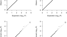 where \({\lambda }_{1}\,..\,{\lambda }_{p}\) is principal component variances or the ordered eigenvalues15,17. To identify lead vQTL with relative independence, we first used LD-clumping66 using a p value threshold of 4.6 × 10–9, r2 < 0.01 and window size of 5000 kb (the same parameter used by ref.15). The LD analysis between vQTL and lead QTL reported by Vuckovic et al. 6 used plink 1.9 with the function of --ld. Second, as there are between trait correlations, i.e., blood cell phenotypes correlate with each other, a novel vQTL was defined as follows: (1) was a lead vQTL from the above described clumping analysis, (2) clumped lead vQTL did not have p value < 4.6 × 10-9 for any blood cell trait levels in Vuckovic et al. and (3) was not in strong LD (r2 < 0.8) with reported lead QTL for any trait in Vuckovic et al. For vQTL mapping results of each trait, we used LDSC27 to estimate lambda-GC and intercept to check inflation. We also used FUMA67 to annotate significant vQTL for each trait with default settings. Results from FUMA functions of SNP2GENE and GENE2FUNC were presented in the results.