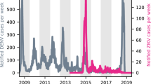 Rojas, D. P. et al. The epidemiology and transmissibility of Zika virus in Girardot and San Andres island, Colombia, September 2015 to January 2016. Euro Surveill. https://doi.org/10.2807/1560-7917.ES.2016.21.28.30283 (2016).