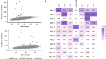 GREML-LDMS was used to calculate heritability across six variance components25. For this, genetic relatedness matrices (GRMs) were calculated using three MAF bins (MAF ≥ 0.001 & <0.01, MAF ≥ 0.01 & <0.05, and MAF ≥ 0.05), and two LD bins (low and high LD). LD bins were derived from LD scores calculated directly from the genotype data mentioned above for all variants with MAF ≥ 0.01 in a 200Kb window. Low LD was defined as those variants having a LD score lower than the genome wide median (median LD score = 81.31), or higher than this in the case of high LD.