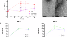 For the infection assay, a liquid culture of PAO1 was prepared as described above until reaching early logarithmic phase (OD600 = 0.2). The liquid culture was diluted with fresh medium to an OD600 = 0.02 (2 × 107 CFU/mL) in 10 mL, mixed with meropenem (minimum inhibitory concentration; MIC = 1 µg/mL83,84,85), the anti-P. aeruginosa phage cocktail, or the combination of both in indicated concentrations and incubated at 37 °C and orbital shaking at 220 rpm. At different time points (15, 30, 45, 60, 120, 180 min) the individual approaches were first sampled for calculating the CFU/mL, then sterile filtered (0.22 µm filter; Carl Roth, Karlsruhe, Germany) and stored at −20 °C until further analysis.