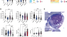 PB mononuclear cells (PBMC) were isolated by Ficoll-Hypaque density gradient centrifugation using Ficall-Paque Premium mononuclear cell separation medium (#17544202, Cytiva). Briefly, PB samples diluted twofold with phosphate buffered saline (PBS) (#10010031, Thermo Fisher Scientific) were layered on top of 1 volume Ficall-Paque medium in a 50-ml Falcon tube and centrifuged at 1140 × g for 20 min at room temperature with brake off. Isolated PBMCs were treated with ACK lysing buffer (#118-156-101, Quality Biological) for lysis of red blood cells, washed with PBS, and resuspended in IMDM (#12440-053, Thermo Fisher Scientific) + 2% fetal bovine serum (FBS, #12306 C, Sigma-Aldrich). Resuspended PBMCs were subjected to scRNA-seq. Aliquots of PBMCs were cryopreserved in 10% DMSO (#D2650-100ML, Thermo Fisher Scientific) in heat-inactivated FBS. Plasma was isolated by centrifugation of a EDTA-treated tube and cryopreserved in a –80 °C freezer for subsequent measurement of cytokines.
