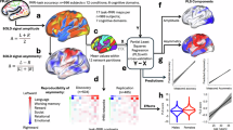 Functional data was slice time corrected using 3dTshift from AFNI v16.2.0763 (RRID: SCR_005927) and motion corrected using mcflirt (FSL v5.0.9)64. This was followed by co-registration to the corresponding T1w using boundary-based registration65 with six degrees of freedom, using bbregister (FreeSurfer v6.0.1). Motion correcting transformations, BOLD-to-T1w transformation and T1w-to-template (MNI) warp were concatenated and applied in a single step using antsApplyTransforms (ANTs v2.1.0) using Lanczos interpolation. Physiological noise regressors were extracted applying CompCor66. Principal components were estimated for the two CompCor variants: temporal (tCompCor) and anatomical (aCompCor). A mask to exclude signal with cortical origin was obtained by eroding the brain mask, ensuring it only contained subcortical structures. Six tCompCor components were then calculated, including only the top 5% variable voxels within that subcortical mask. For aCompCor, six components were calculated within the intersection of the subcortical mask and the union of CSF and WM masks calculated in T1w space, after their projection to the native space of each functional run. Framewise displacement67 was calculated for each functional run using the implementation of Nipype.