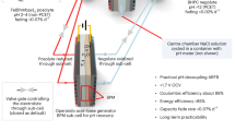 The battery was assembled with proton exchange membrane, gasket, graphite electrode (10 mm thick), current collector (Cu, 1.5 mm thick) and end plate (PP, 5 mm thick), as shown in Supplementary Fig. 24). Graphite felt electrode (2 mm thick) was used to increase the contact area between electrolyte and graphite electrode (Supplementary Fig. 25). The ‘S’ shape flow field with 2 mm depth and the area of 9 cm2 and 16 cm2 respectively were prepared. Nafion® 117 was used as the membrane in the experiment without pretreatment. 4 × 4 cm and 5 × 5 cm Nafion® 117 membranes were used for flow batteries with electrode areas of 9 cm2 and 16 cm2, respectively. The ohmic resistance of the flow battery (with electrode area of 16 cm2) was measured by electrochemical impedance spectroscopy (EIS) method by an electrochemical working station (Gamry INTERFACE 1010E). The measurements were performed in 3Na-PW12(0.1 mol l−1)-NaI (1 mol l−1) and 3Na-PW12(0.3 mol l−1)-NaI (2 mol l−1) electrolyte solution respectively, with the flow rate of 90 ml min−1 at room temperature, in the frequency range of 0.01 Hz to 100 kHz and at the open-circuit voltage.