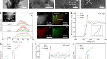 The electrochemical NO reduction performance over Co/Co3O4/CoB was assessed in an H-type electrolytic cell filled with 0.1 M phosphate buffer saline (PBS) aqueous solution. As shown in Fig. 3a and Supplementary Fig. 9, the linear sweep voltammetry (LSV) curves (iR-corrected or not) reveal that both Co/Co3O4/CoB and Co/Co3O4 exhibit a significantly increased current density in 10 vol.% NO/Ar atmosphere as compared to pure Ar atmosphere, suggesting preferred NORR on Co/Co3O4/CoB and Co/Co3O4 surface. Chronoamperometric (1 h electrolysis) and ultraviolet-visible (UV-vis) colorimetric measurements were used to quantitatively determine the NH3 Faradaic efficiency (FE) and yield rate (Supplementary Figs. 10 and 11). At −0.5 V vs. RHE, the Co/Co3O4/CoB displays the optimum FENH3 of 98.80% and NH3 yield rate of 462.18 µmol h−1 cm−2 (2.31 mol h−1 gcat−1), much higher than Co/Co3O4 (FENH3 of 91.28% and NH3 yield rate of 252.34 µmol h−1 cm−2, Fig. 3b, c). 1H nuclear magnetic resonance (NMR) measurements give comparable results (Supplementary Figs. 12–14). The possible by-products produced over Co/Co3O4/CoB during NORR were checked by differential electrochemical mass spectroscopy (DEMS), UV-vis absorption spectroscopy, and gas chromatography (Supplementary Figs. 15–18). The hydroxylamine (NH2OH), N2 and N2O by-products were not detected. Moreover, we conducted the NORR experiment over Co/Co3O4/CoB in 0.1 M KOH aqueous electrolyte. The NORR performance was poorer as compared with the experiment conducted in 0.1 M PBS (Supplementary Fig. 19). The better NORR performance of Co/Co3O4/CoB as compared to that of Co/Co3O4 can be further reflected by the smaller semicircle radius in the electrochemical impedance spectroscopy (EIS) spectrum (Supplementary Fig. 20), indicating a smaller charge transfer resistance (Rct) over Co/Co3O4/CoB surface. A series of control experiments indicate that the nitrogen in the NH3 product originates solely from NO (Fig. 3d). Carbon paper itself shows negligible NORR activity, disclosing that NH3 is mainly produced on Co/Co3O4/CoB (Fig. 3d). Using isotopic 15NO as the reactant, the characteristic double peaks (inset in Fig. 3d) appear with a separation of 72 Hz, corresponding to 15NH4+, indicating that 15NO is the sole nitrogen source of NH3 production. Besides excellent catalytic activity, Co/Co3O4/CoB also displays good catalytic stability. During five consecutive electrolysis cycles at −0.5 V vs. RHE, the FENH3 and NH3 yield rate remain nearly unchanged (Fig. 3e). Moreover, this catalyst exhibits good current stability for ~100 h at −0.5 V vs. RHE (Supplementary Fig. 21). Co/Co3O4/CoB shows a good structural stability during the NORR based on the XRD, HRTEM and XPS characterizations (Supplementary Figs. 22–24). The ternary Co/Co3O4/CoB achieves a high FENH3 of 98.80% and NH3 yield rate of 462.18 µmol h−1 cm−2 as well as long-time stability at a low cathodic potential of −0.5 V vs. RHE, superior to most of the reported NORR electrocatalysts (Fig. 3f and Supplementary Tables 4 and 5). To demonstrate the practical application potential of the Co/Co3O4/CoB catalyst, a Zn-NO battery with Co/Co3O4/CoB cathode and Zn plate anode was assembled (Supplementary Fig. 25), which could deliver an open circuit voltage (OCV) of 2.04 V (Supplementary Fig. 26) and a maximum power density of 10.06 mW cm−2, outperforming all reported results in the literature (Supplementary Figs. 27 and 28, Supplementary Table 6). The output discharge current density increases continuously from 0.5 to 8 mA cm−2 and each step exhibits a stable discharging plateau, indicating that our cell has an excellent discharge capability (Supplementary Fig. 29). Moreover, the NH3 yield rate exhibits a maximum of 1627.67 µg h−1 mgcat−1 at 8 mA cm−2 (Supplementary Fig. 30). Significantly, the Zn-NO battery can remove NO pollutant, produce NH3 and generate electricity at the same time.