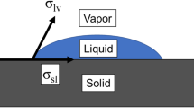 where ALV, ASL, and ASV are the areas of the liquid-vapour, solid-liquid, solid-vapour interfaces, respectively, γ ≡ γLV, γSL, and γSV are the energy per unit area of the liquid-vapour, solid-liquid, solid-vapour interfaces, respectively, \(A(\beta,\bar{d})\) is given by Eq. (12), \({A}^{{\prime} }(\beta,\bar{d})\) is given by Eq. (11) and the last relation is the Young’s equation. Considering θY = 0, the expression of F becomes