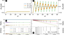 While both cooling and adiabatic state preparation are affected by closing of the energy gap, for sake of simplicity we shall only focus on adiabatic state preparation in this work. The adiabatic theorem states that to prepare the ground state of a many-body system one can start with an easily preparable ground state of a simple Hamiltonian and slowly change the Hamiltonian into the desired one. If the evolution is slow enough, taking place over a long time T, then quantum state of the system follows the ground state of the instantaneous Hamiltonian and thus reach the desired ground state at the end of the evolution. The original formulation of the adiabatic theorem requires that \(T \sim 1/{\Delta }_{\min }^{2}\) where \({\Delta }_{\min }\) is the minimum energy gap of the Hamiltonian throughout the evolution55. However, there has been a lot of effort to speed up the state preparation42,56,57,58. In fact, it has been demonstrated that one can reach the ground state with high fidelity even if the evolution time only scales as \(T \sim 1/{\Delta }_{\min }\)42.