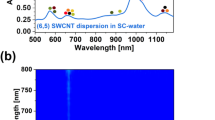 Pristine (6,5) SWCNTs were transferred to PL-PEG5000 using an adapted procedure as reported by Welsher et al.36. SWCNT dispersions were mixed with appropriate amounts of 18:0 PEG5000 PE (1,2-distearoyl-sn-glycero-3-phosphoethanolamine-N-[methoxy(polyethylene glycol)-5000], PL-PEG5000, Avanti Polar Lipids, Inc.) to obtain a final concentration of 2 mg mL−1. After dialysis against ultrapure water in a 1 kg mol−1 dialysis bag (Spectra/Por, Spectrum Laboratories Inc.) for 5 days, the obtained dispersion was subjected to bath sonication for 10 min.