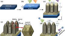 The morphology and microstructure of AlGaN and AlGaN/CuOx nanowires were characterized using a field emission scanning electron microscope (FESEM, Hitachi Regulus 8220) and a transmission electron microscope (TEM, Talos F200s). The chemical states of the elements in the samples were evaluated using an X-ray photoelectron spectrometer (XPS, Thermo Scientific, Escalab 250xi) with a monochromatic Al kα source (15 kV, 150 W). The position of the binding energy peak was calibrated by the C1s peak (284.6 eV). The carrier dynamics curves of CuOx nanostructures with an excitation wavelength of 300 nm were obtained using CEL-TAS3000 femtosecond transient absorption spectroscopy. Transient absorption spectroscopy was carried out by using an optical instrument combined a frequency-doubled mode-locked Ti/sapphire femtosecond laser (coherent) and an optical parametric amplifier system. The amplified Ti/sapphire femtosecond laser generates seed pulses with a 35 fs pulse width and a repetition rate of 1 kHz. The seed pulses are divided into two distinct beams. The strong beam is sent to the OPA system and provided the 300 nm pump laser pulse, and the other one is focused onto a nonlinear crystal to generate a white light continuum, providing broadband of 400–800 nm UV–vis probe light. The excitation beam has a low energy of 10 nJ cm−2 per pulse to avoid the exciton–exciton and exciton–charge annihilation effects.
