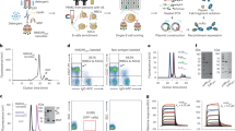 To create a monovalent antibody, we used knobs-into-hole technology19. “Hole” mutations (T366S / L368A / Y407V) were introduced in the CH3 domain of the parental antibody heavy chain. A “Knob” mutation (T366W) was introduced in the CH3 of the Fc protein and combined with the “Hole” introduced heavy chain. In order to avoid antibody-dependent cell-mediated cytotoxicity (ADCC), antibody-dependent cell-mediated phagocytosis (ADCP) or complement-dependent cytotoxicity (CDC), LALA mutations (L234A / L235A) were introduced in the CH2 domain20 to reduce binding to the IgG Fc receptors FcγRI, FcγRII, and FcγRIII as well as to complement component C1q (Supplementary Figs. S1 and S2). These knobs-into-hole and LALA mutations have been successfully introduced to therapeutic monoclonal antibodies without increasing immunogenicity21,22. ART5803 was finally selected as a humanized IgG1 monovalent antibody having the highest affinity to the GluN1-NTD (Fig. 1b).