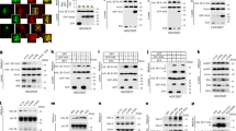 Previous results show that endogenous TUG protein is present both in punctate structures, colocalized with the ERGIC marker ERGIC53, and diffusely throughout the cytosol16,18. As well, when an extended linker is used, TUG can be tagged at its C-terminus without disrupting its function in 3T3-L1 adipocytes21. Therefore, to image TUG protein in cells without fixation or antibody staining, we used a linker to fuse mCherry fluorescent protein at the TUG C-terminus. In TUG knockout (KO) HeLa cells, this TUG-mCherry protein was enriched in clustered punctate structures that colocalized extensively with Emerald-tagged ERGIC5327, and in a diffuse pattern throughout the cytosol and nucleus, recapitulating previous results (Fig. 1a). When Emerald-ERGIC53 was expressed alone, this marker had a typical distribution that partially overlapped with GM130 and with Sec31A, proteins present at the cis-Golgi and at ERES, respectively (Supplementary Fig. 1a, b). TUG-mCherry puncta do not overlap with the ERES, as assessed in cells co-expressing Sec23-GFP (Fig. 1b). TUG-mCherry was also excluded from the Golgi apparatus, as shown by co-expression of monomeric Neon Green (mNG) -tagged GMAP210 (Fig. 1c). We observed a similar distribution of TUG-mCherry, with respect to the above markers, when it was expressed in wild-type (WT) HeLa cells (Supplementary Fig. 1c–e). Syntaxin-12 (Stx12, also called Stx13) is consistently associated with GLUT4 in proteomic studies28,29,30,31,32, and is required for the unconventional secretion of CFTR11. We observed partial overlap of TUG-mCherry with GFP-tagged Stx12, (Fig. 1d). These results are expanded upon below. Together, the data are consistent with previous results and show that TUG localizes at the ERGIC in HeLa cells, and that TUG overexpression appears to sequester ERGIC membranes away from the ERES and cis-Golgi.
