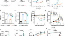 After demonstrating the efficient and instant activation of O-R848 by X-ray, we aim to validate the suitability of various commercial TLR7/8 agonists for this technique. Firstly, we synthesized 11 types of oxygen atom-engineered TLR7/8 agonist prodrugs, all of which contain imidazoquinoline (IMDQ) groups (Fig. 2d, Supplementary Fig. 1 and Supplementary Figs. 31–60). The density functional theory (DFT) calculation employed the B3LYP method (detailed in the Supplementary Information) and the lowest unoccupied molecular orbital (LUMO) distribution of the representative molecules O-R848 (Fig. 2e) suggested that the π-system of the imidazoquinoline groups accommodates the e-aq. Our previous work has illustrated that the reaction occurs when the absolute value of Gibbs free energy change (|ΔG | ) between oxygen atom-engineered prodrugs and its anion radical intermediate (after accommodating the e-aq) in the aqueous phase is greater than that of e-aq30. The |ΔG| values of different prodrugs compared with that of e-aq suggested good reactivity (Fig. 2f and Supplementary Table 2). The experimental activation yields of these prodrugs (10 μM in PBS solution) treated with 60 Gy X-ray irradiation were also consistent with the theoretical calculation results (Fig. 2g and Supplementary Figs. 7–17). We next determined whether X-ray can rescue the blocked immunostimulatory activity of these prodrugs. The concentration-dependent TLR7/8 activation of active agonists, corresponding prodrugs, and prodrugs treated with 60 Gy X-ray were compared via the RAW-Blue report cell assay (Fig. 2h). The results indicated that these reported TLR7/8 agonists hold promise for being developed into new prodrugs for radio-immunotherapy using the SAE-RAP technique.
