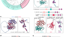 To investigate the possible roles of chromatin remodeling during Toxoplasma growth and development, we first sought to identify the proteins that might be involved in chromatin remodeling in Toxoplasma. For this purpose, the peptide sequences of the DEXDc and HELICc domains from known chromatin remodeling ATPases in Saccharomyces cerevisiae (Snf2, Sth1, Ino80, Swr1, Isw1, Isw2, Chd1, Fun30) were used to query the Toxoplasma gondii genome using protein BLAST searches in ToxoDB (https://toxodb.org/toxo/app, release 60), since DEXDc and HELICc domains are the key and iconic elements of chromatin remodeling ATPases38,39. The Toxoplasma hits with both DEXDc and HELICc domains (as determined by the SMART program) were individually used to BLAST against the Saccharomyces cerevisiae genome to make sure known yeast chromatin remodeling ATPases were among the top hits. Such analyses identified 16 putative chromatin remodeling ATPases in T. gondii (Fig. 1a). Eukaryotic organisms often encode multiple chromatin remodeling complexes that can be clustered to different groups, and four families (SWI/SNF, ISWI, NuRD/Mi-2/CHD, and INO80) are commonly seen. Phylogenetic analyses using representative ATPase sequences of the four canonical families from model organisms (Homo sapiens, Mus musculus, Drosophila melanogaster, and Saccharomyces cerevisiae) suggest that Toxoplasma has ATPases that belong to each of those four families (Fig. 1b) (Supplementary data 1). Like yeasts and mammals, Toxoplasma also has two ATPases (TGME49_321440 and TGME49_273870) in the ISWI family and two (TGME49_278440 and TGME49_320300) in the SWI/SNF family. For the two proteins in ISWI family, in-depth sequence comparisons suggest that TGME49_321440 has higher sequence similarities with mammalian SNF2H, whereas TGME49_273870 is more similar to mammalian SNF2L (Fig. 1b). Therefore, they were named TgSNF2H and TgSNF2L, respectively. The two proteins in the SWI/SNF family (TGME49_278440 and TGME49_320300) are also highly similar to each other (Supplementary data 1).