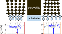 Preliminary photovoltaic characterisation has been carried out on [H3N(CH2)8NH3]PbI4 and [H3N(CH2)8NH3]PbI4·I2 (Supplementary Figs. 33–36). Although these devices require much more optimisation in terms of factors such as film thickness and morphology, the measurements show that these materials have potentially useful photovoltaic properties. Based on the preliminary device testing, the intercalated materials show higher short circuit current densities than their parent layered perovskites, as expected, but the reduction in band gap has a bigger overall effect on device performance, as indicated by the smaller open circuit voltage in the intercalated materials.