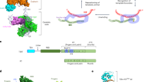 Telomerase associates with several accessory proteins, which are essential to form the active enzyme complex. A number of these proteins interact with the complex via the RNA template component hTR. The RNA binding proteins dyskerin, NOP10, NHP2, and GAR1 form a complex with hTR to protect the RNA subunit from degradation5. The hTR component also contains a Cajal body box (CAB box), comprising the terminal hairpin loop of the scaRNA domain, that facilitates trafficking of telomerase to subnuclear membrane-less organelles called Cajal bodies by the WD40 repeat protein TCAB1 (WRAP53)6,7. Telomerase is released from Cajal bodies and recruited to the telomere during S-phase, engaging in many probing interactions with the telomere before forming a stable association with the shelterin component TPP18,9,10. Following recruitment to the telomere, the single-stranded 3′ G-rich overhang acts as a substrate for telomerase, annealing to the RNA template motif within hTR, and enabling hTERT to reverse transcribe successive telomeric repeats onto the chromosome terminus11.