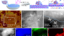 Linear sweep voltammetry (LSV) tests were performed in 1 M KOH with and without 0.3 M KNO3. Figure 2a demonstrates a significant enhancement in the current density of both catalysts upon adding KNO3, indicating the occurrence of the NO3RR process. The Co6Ni4 catalyst exhibits the most pronounced NO3RR response, reaching a current density of 1 A cm−2 at − 0.276 V. The FE and yield rate of NH3 were calculated by collecting the electrolyte after 1-hour chronoamperometric test and subsequently analyzing the product (Supplementary Fig. 11). Co6Ni4 catalyst exhibits an FENH3 greater than 90% across a wide potential range from − 0.176 V to − 0.576 V. At an applied potential of − 0.476 V, the FENH3 reaches its maximum value of 99.21%, accompanied by a high yield rate of 93.55 mg h−1 cm−2. Furthermore, the highest NH3 yield rate of 102.94 mg h−1 cm−2 was observed at − 0.576 V, accompanied by an FENH3 of 94.59% (Fig. 2b, c). The FE and yield rate of NH3 in Co and Ni catalysts exhibit a notable decline in comparison to that observed in Co6Ni4 catalyst, except for potentials of − 0.076 V and − 0.176 V, at which Co catalyst manifests greater FENH3 than Ni and Co6Ni4 catalysts. Subsequently, by-product analyses indicate that the FE of NO2- follows the order: Ni catalyst > Co6Ni4 catalyst > Co catalyst, and N2H4 was undetected (Supplementary Fig. 12a–c). The decreased FE of H2 observed for the synthesized catalysts suggests that the NO3RR dominates the reaction process (Supplementary Fig. 12d). Moreover, the half-cell EE of the catalysts was calculated by assuming that the overpotential of OER is zero. It suggests that when the applied potential is less than − 0.176 V, which corresponds to a larger reduction current of NO3-, Co6Ni4 catalyst exhibits the highest EE in comparison to Co and Ni catalysts (Fig. 2d). Conversely, when the applied potential is greater than − 0.176 V, Co exhibits the highest EE among the three catalysts, due to its higher FENH3. Additionally, the results of 40 consecutive cycles of operation demonstrated the stability of the NH3 production on Co6Ni4, which exhibited an average FENH3 of 95.83% and an average NH3 yield rate of 82.74 g h−1 cm−2 for a 120 h test (Fig. 2e and Supplementary Fig. 13). The structure and morphology of Co6Ni4 remained largely unchanged after the cycling, except for the formation of corrosion-induced pores on the surface (Supplementary Figs. 14–16).
