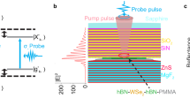 Dielectric effects in the material are taken into account using the Fresnel equations (similar to ref. 50). We assume a sharp interface between vacuum and sample, where the incoming electric field \({{\bf{E}}}_{{\rm{pump}}}^{{\rm{vac}}}(t)\) is partially transmitted and reflected, respectively. The effective field within the bulk is modeled by the transmitted field \({{\bf{E}}}_{{\rm{pump}}}^{{\rm{t}}}(t)\) (which then defines Apump(t)). As discussed in ref. 79, the LAPE process is mostly sensitive to the electric field close to the surface, which is given by a superposition of incoming \({{\bf{E}}}_{{\rm{pump}}}^{{\rm{vac}}}(t)\) and reflected field \({{\bf{E}}}_{{\rm{pump}}}^{{\rm{r}}}(t)\): \({{\bf{E}}}_{{\rm{pump}}}^{{\rm{eff}}}(t)={{\bf{E}}}_{{\rm{pump}}}^{{\rm{vac}}}(t)+{{\bf{E}}}_{{\rm{pump}}}^{{\rm{r}}}(t)\).