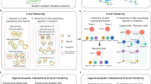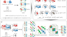 Given the normalized expression matrix, we begin with inferring the cell-cell communication using the CellChat software13. CellChat first calculates the ensemble average expression levels of ligands in the sender cell cluster and their corresponding receptors in the receiver cell cluster based on a built-in ligand-receptor interaction (LRI) database. Then, a Hill function based on the law of mass action is adopted to measure the strength of the communication between a given LRI102. At the same time, the expression of auxiliary molecules like agonists and antagonists are also incorporated to improve the accuracy of CCC inference. Given the sender cluster i and receiver cluster j, the output of the CellChat contains the communication strength of the k-th LR pair (denoted as \({P}_{{ij}}^{k}\)) and its significance level (denoted as the p-value \({\rm pv}\)). Specifically, the communication strength is calculated as: