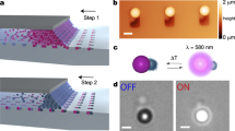 Complex patchy particle fabrication (CU and CU Mountain): Spherical particles from Fig. 1 were printed as 10 µm diameter spheres with the corresponding stencils and were coated with 10 nm Cr and 30 nm Au using thermal evaporation. After stencil removal, particles were removed from the substrate by depositing 10 µL of DI water onto the printed array, scraping with a pipette tip, transferring the suspended particles to an Eppendorf tube, and diluting to a concentration of 30 particles µL−1 of DI water. For images of STL designs and the corresponding files, refer to Supplementary Fig. 16 and STL files 1 and 2 (Supplementary Data).