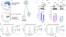 Macrophages and phagocytes were collected from in vitro phagocytosis assays and stained with CD37. As expected, CD37 was enriched in macrophages and barely detectable in phagocytes (Fig. 3A, B, Supplementary Fig. 2A, C). Donor-derived macrophages (DDM) were collected and divided into the CD37-negative and -positive subgroups. An in vitro phagocytosis assay was performed, and CD37-negative macrophages exhibited enhanced phagocytosis of multiple cancer cells, especially BRCA and GBM cells (Fig. 3C, Supplementary Fig. 4A). This could be attributed to the discrepant significance of CD37 in suppressing phagocytosis in diverse tumors. Some tumor cells predominantly depend on the CD37 pathway to realize immune escape, whereas in other tumors, the role played by CD37 is not predominant. Thirteen separate DDMs were collected and treated with CD37-specific antibody naratuximab. DDMs were then incubated with MDA-MB-231 cells, or the glioblastoma cell lines U251, DDM1, and DDM2 were picked for presentation. These results suggest that targeting CD37 promotes phagocytosis to eliminate cancer cells (Fig. 3D, E, Supplementary Fig. 2C). CD37 was knocked out in the THP1 and U937 cell lines using the CRISPR-Cas9 system, and macrophages were obtained after PMA application. Macrophages were incubated with MDA-MB-231 and U251 cells. CD37 knockout promoted the phagocytosis of MDA-MB-231 and U251 cells (Fig. 3F, G). Antigen presentation is another critical function that promotes T cell recognition and cytotoxicity. Thus, we used T cell proliferation and chemokine detection assays to validate the antigen presentation ability of these cells. T cell function was strongly enhanced, as measured by increased proliferation rate and increased production of IFNγ (Supplementary Fig. 4B–E, Supplementary Fig. 2B). This was further confirmed using in vivo experiments in immunocompromised (BALB/c Nude) and C57BL/6 mice. Cancer cells were transplanted into the kidney capsules of mice, and naratuximab and control IgG were injected intraperitoneally. Naratuximab treatment resulted in tumor eradication, as measured by the decreased flux intensity and prolonged survival time (Fig. 3H, I). For further confirmation, we established a conditional CD37 knockout model in C57BL/6 mice (CD37fl/fl-CD11b Cre). Cancer cells were engrafted into the kidney capsule, and flux intensity and overall survival time were measured. Consistent with previous results, knocking out CD37 in macrophages promoted the elimination of multiple cancer cells and prolonged the overall survival time (Supplementary Fig. 4 F–H).