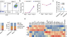 CAR-T/tumor cocultures were harvested after the fifth challenge, and residual SupT1-B7H3range expression of B7H3 was measured. Figure 6h shows concatenated B7H3 expression on GFP-positive SupT1 cells across the CAR groups. While TE9 and 376.96 CAR-T cultures contained few or no residual B7H3-positive targets, MGA271 CAR-exposed SupT1 cells maintained a range of B7H3 expression. Compared to the NTD T cell condition, MGA271 eliminated only the antigen-high SupT1 targets (Fig. 6h, i). We observed the same differences when performing a 72 h in vitro co-culture with SupT1-B7H3range cells at a lower E:T ratio of 1:4 (Supplementary Fig. 9c–e).