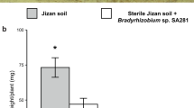 The strains were tested for plant-beneficial traits including nitrogenase activity, siderophore production, phosphate solubilization, and IAA production. Nitrogenase activity was measured as described by Hunt et al.45. Briefly, strains were cultured in LB broth (37 °C, 170 rpm, overnight), washed, and resuspended in Ashby’s medium. A 1% inoculum was transferred into 10 mL semi-solid Ashby’s medium in serum bottles, which were sealed and purged with argon gas to ensure anaerobic conditions. Acetylene (10%, v/v) was injected, and bottles were incubated at 28 °C for 72 h. Ethylene production in 250 µL gas samples was quantified by gas chromatography. Siderophore production was tested using the chrome azurol S (CAS) agar method, as outlined by Gu et al.46. Briefly, strains (1% inoculum) were cultured in MKB medium (30 °C, 170 rpm, 2 d). After centrifugation (10,000 × g, 5 min), supernatants were mixed 1:1 with CAS reagent, incubated at room temperature, and absorbance at 630 nm was measured. Siderophore production using the follow equation: