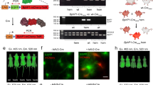Several Blvra−/− mouse strains were recently reported25,26,27,28,58. The founders of the Blvra−/− strain characterized here were a gift from Drs. Kenta Terai and Michiyuki Matsuda and allowed us to establish our colonies. The animals were obtained via JCRB Laboratory Animal Resource Bank of the National Institutes of Biomedical Innovation, Health and Nutrition (Tokyo, Japan), animal ID nbio-370. These Blvra−/− mice were developed by a CRISPR/Cas9 system targeting the murine Blvra gene (NM_026678.4)27. A F0 mouse with a large DNA-fragment inversion between the two gRNA-target sites (Supplementary Fig. 2a) was selected and further crossed with B6 albino mice to obtain Blvra−/− progeny in the F2 generation. The presence of the transgene in the offspring was detected using PCR. Ear punches (~1 mm in diameter) were incubated with 250 μl of 10 mM NaOH, 0.1 mM EDTA at 95 °C for 10 min. One microliter of solution was used as a template for PCR. The thermal protocol consisted of an initial hold of 95 °C for 1 min, followed by 35 cycles of 95 °C for 15 s, 58 °C for 20 s, 72 °C for 30 s, and an additional 72 °C for 2 min. The reaction volume was 20 μl. PCR products were visualized using agarose gel electrophoresis. Genotypes were determined using primers annealing to WT allele (5’-TGGTAGTGGTTGGTGTTGGC-3’ and 5’-CCACTACTCGGCATGGTTCT-3’, amplicon size 216 bp) and to the inverted allele (5’-CCACTACTCGGCATGGTTCT-3’ and 5’-AAAGGATGAAAGGCAACATGAGCAG-3’, amplicon size 417 bp) (Supplementary Fig. 2b). Since we established a colony of loxP-BphP1 homo, Blvra−/− mice we determined the progeny homozygous for BphP1 insert using primers annealing to intact ROSA26 locus (5’-AGCACTTGCTCTCCCAAAGTC, 5’-TGCTTACATAGTCTAACTCGCGAC, product size 564 bp) and transgene floxed EGFP sequence (5’-GGCAGAGGATCGTTTCGCGG, 5’-GAAGCACTGCACGCCGTAGG, product size 240 bp) as in Supplementary Fig. 3b.