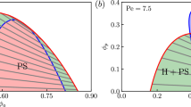 A third possibility occurs for \(| {\phi }_{0}|=1/\sqrt{2}\) and \({\alpha }_{0}={\alpha }_{1}\pm \frac{1}{2}\sqrt{1+{\alpha }_{1}^{2}}\) where Re(λ) = Im(λ) = 0. Finally, a pair of real eigenvalues could both change signs signalling an instability where perturbations grow and lead to the formation of a bulk separated state indicated by the grey circles in Fig. 7.