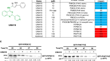 To identify the putative cellular targets, we first conducted kinome profiling in cell lysates treated with RMC-113 via multiplexed inhibitor beads kinome profiling coupled with mass spectrometry (MIB/MS) on 224 kinases20. RMC-113 exhibited dose-dependent binding to PIKfyve, PIP4K2A, PIP4K2B, and PIP4K2C, with low or no binding to other kinases (Fig. 2a and Supplementary Fig. 2a). An orthogonal radiometric kinase activity screening of 335-kinases, excluding PIKfyve and PIP4K2s, measured no confirmed activity against any kinase, with an excellent selectivity score (S(50) = 0.003) at both 100 nM and 1 μM (Supplementary Data 1). RMC-113 potently bound recombinant PIKfyve (Kd=370 nM) and PIP4K2C (Kd=46 nM) and suppressed the enzymatic activity of PIKfyve (IC50 = 8 nM) (Fig. 2b–d). While no in vitro enzymatic assay currently exists for PIP4K2C, cell-based target engagement analysis via live-cell NanoBRET assays21 revealed comparable activities on PIP4K2C and PIKfyve (IC50 = 392 nM and IC50 = 300 nM, respectively). No kinase activity (IC50 > 10 µM) and lower affinity (Kd=1.7 µM) were, however, measured on PIP4K2A and PIP4K2B, respectively (Fig. 2d).