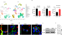 12-week-old male C57BL/6 mice were administered either PBS or Bleomycin as described in the previous section and were sacrificed for cell isolation at day 14. AT2 cells were isolated as previously described using negative selection, resulting in 92–95% surfactant protein C-positive cells102. Briefly, mice were anesthetized using ketamine-xylazine mixture and trachea was intubated with a modified 19 G needle (blunt end and grated edges). Bronchoalveolar lavage fluid (BALF) was collected twice with 500 ul PBS supplemented with protease inhibitors. Lungs were perfused with warm 0.9% NaCl through the heart and filled with 1.5 ml Dispase (50 Caseinolytic units/ml, BD Bioscience) and immediately capped with 300 ul 2% agarose and incubated for 45 min. Lungs from 4 mice were pooled for each isolation. Lung lobes were separated and minced using forceps and cells were passed through 100 um, 20 um and 10 um nylon filters. Cells were then plated in petri dishes and incubated at 37 °C for 30 min for negative selection of fibroblasts and macrophages. Unattached cells were collected and negative selection of CD45+/CD31+ cells was performed using MACs magnetic microbeads and separators. The remaining cells were plated in cell culture plates or on coverslips coated with Poly-L-lysine. Incubation duration and biological replicates are indicated in each experiment. DAEC complete medium consisted of high-glucose DMEM (D0822, Sigma) with 1% Pencillin/streptomycin, 1X glutaMax.