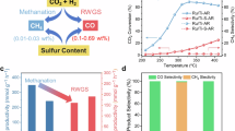 The long-term stability was examined by chronoamperometry method at 100 mV without iR corrections. The current density of Cos-SO-Ru exhibits only a slight decrease of 8.8% after 200 h, thus confirming the outstanding durability compared to other state-of-the-art catalysts (Fig. 4d, Supplementary Table 8). The TEM and HAADF-STEM images reveal that the spent catalyst retains similar structures and nearly unchanged size of Ru clusters (~2 nm) compared with the pristine Cos-SO-Ru (Supplementary Figs. 29,30), demonstrating the stable structure. The EDX mapping exhibits the homogenous dispersion of sulfur and oxygen atoms in Cos-SO-Ru after 200 h of operation (Supplementary Fig. 31). The XPS analysis further confirms that the S = O and S-Ru/Co bonds remain well-preserved (Supplementary Fig. 32), indicating the structural robustness of S = O bridges in Cos-SO-Ru. Additionally, the Ru sites also maintain a stable valence state under the oxidation potential after 200 h of testing (Supplementary Fig. 33). Overall, these experimental results confirm the stable chemical states of Cos-SO-Ru. Encouraged by the good HOR catalytic performance of Cos-SO-Ru, the membrane electrode assembly was fabricated using Cos-SO-Ru or Pt/C (0.1 mgRu cm−2) as the anode and Pt/C (0.4 mgPt cm−2) as the cathode. Figure 4e illustrates that the Cos-SO-Ru achieves a peak power density of 1.02 W cm−2 at a current density of 2.96 A cm−2, outperforming the performance of the Pt/C anode, which exhibits a power density of 0.75 W cm−2 at 1.84 A cm−2. Additionally, the Cos-SO-Ru display comparable stability with a 0.1 V voltage decrease after 40 h of operation (Supplementary Fig. 34), demonstrating the great potential for practical applications.