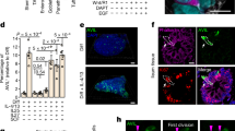 Organoid knock-ins were generated by in-trans paired nicking (ITPN) as described in Bollen and Hageman et al25. (Supplementary Fig. 4d–g). Cas9 D10A nickase (addgene #48141) locus-specific expression vectors were generated according to published protocols53. For transfection, organoids were trypsinized to cell clumps containing ~5 cells (1 × 106 cells total) and coelectroporated with 15 μg DNA and 5 ug of Cas9 D10A nickase and targeting vector using the NEPA21 Super Electroporator (Nepagene) following described conditions54. Electroporated cell clumps were plated in Matrigel overlayed with ENR culture medium, which was supplemented with 10 μM Y-27632 Rho-kinase inhibitor (Gentaur) and 0.25 nM Wnt surrogate-FC fusion protein (U-Protein Express) for the first 3 days. Targeted cells were selected using 2 μg/ml puromycin (Sigma) and maintained as polyclonal populations. Proper integration of the knock-in constructs was validated by targeted PCR of genomic organoid DNA (isolated with QIAamp DNA Micro Kit from Qiagen, according to the manufacturer’s instructions) using the primers listed in Supplementary Table 1, followed by Sanger sequencing of the PCR product.