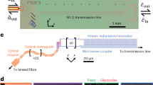 The relative strength of multi-photon processes is governed by the dimensionless quantity η. It can be expressed as \(\eta=\sqrt{\pi Z/{R}_{Q}}\), where \(Z=\sqrt{L/C}\) is the LC circuit impedance, and RQ ≈ 6.4 kΩ is the superconducting resistance quantum16. The n-photon process \({\hat{a}}^{{{{\dagger}} }^{n}}{\hat{a}}^{n}\) has a strength Jn that scales as \({\left({\eta }^{n}/n!\right)}^{2}\). Going beyond the Kerr effect requires that ∣J3/J2∣ = η/3 ≳ 1, or equivalently Z ≫ RQ. However, fabricating an LC oscillator with a characteristic impedance far exceeding the superconducting resistance quantum is challenging. A successful strategy has been to fabricate the resonator inductance from an array of 40 to 100 Josephson junctions17,18 or a high kinetic inductance material such as granular aluminum19. Values of η ≈ 1.8 have been achieved, giving rise to the fluxonium qubit. More recently, arrays of 460 Josephson junctions have been suspended above the substrate, achieving η ≈ 3.8, and giving rise to the quasicharge qubit20. Another strategy has been to fabricate the resonator out of a planar coil of thin superconducting wire. Fluctuations of η ≈ 1 were achieved, and emissions of k-photon bunches (k = 1 to 6) were observed by activating the process \({\hat{a}}^{k}+{\hat{a}}^{{{{\dagger}} }^{k}}\) with a voltage-biased junction21. Values as large as η = 2.4 were reported by suspending such a planar coil on a thin substrate22, leading to the observation of phase delocalization with an uninterrupted wire.