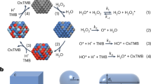 There is evidence that the Fe3O4 nanozyme surface not only forms •OH radicals but also catalyzes peroxidase-like reactions through the formation of high-valent FeIV=O species, with competition between the two pathways54. This finding illustrates that the Fe3O4 nanozyme combines characteristics of both Fenton-like catalysis (•OH radical pathway) and HRP-like catalysis (FeIV=O intermediate pathway). Recent studies indicate that the peroxidase-like activity of Prussian blue nanozymes also involves both pathways, with low-crystallinity Prussian blue forming FeIV=O intermediates more significantly than high-crystallinity counterparts119. However, the molecular mechanisms and structure–activity relationships determining the direction of these two pathways are not fully understood.