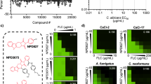 Analogues of ellipticine were pursued through an examination of its core structure, which is composed of two benzene rings surrounding a pyrrole ring. Three distinct series of ellipticine analogues were studied, each maintaining the fundamental structure of the parent nucleus: the a-series, which investigated substitutions on the benzene ring on the left side of the parent nucleus structure; the b-series, which concentrated on alterations to a nitrogen atom of the pyrrole ring; and the c-series, which explored modifications to the connecting substituents on the benzene ring on the right side of the parent nucleus structure (Supplementary Fig. 9). Dose-matrix titration assays and spotting assays identified three compounds, namely 7H-Dibenzo[c,g]carbazole (Supplementary Fig. 10a), 10-Bromo-7H-benzo[c]carbazole (Supplementary Fig. 10b), and phiKan 083 (Supplementary Fig. 10c), that demonstrated promising antifungal properties through the inhibition of FLC tolerance. Subsequently, we conducted further evaluation of the antifungal activity of these compounds through time-growth curves, leading to the discovery that only phiKan 083 demonstrated dose-dependent inhibition of fungal growth when combined with FLC (Supplementary Fig. 10d–f). Similar to ellipticine, phiKan 083 can also impair mitochondrial function (Supplementary Fig. 10g, h).