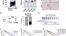 Integrative analysis identified DSS1 as a metastasis-associated gene in ccRCC (Fig. 1a, b). Comparative analysis demonstrated aberrant upregulation of both DSS1 mRNA (Fig. 1c, Supplementary Fig. 1a) and DSS1 protein levels (Fig. 1e) in advanced ccRCC relative to early-stage tumors and normal kidney tissues. This upregulation may not be influenced by patient sex, as no significant sex-specific differences were observed between tumor and normal tissues (Supplementary Fig. 1b). Elevated expression of DSS1 was an unfavorable factor for patient survival of ccRCC (Fig. 1d, f), with no sex-specific differences observed (Supplementary Fig. 1c). DSS1 was broadly upregulated across multiple cancer types and associated with poorer patient survival (Supplementary Fig. 1d, e, Supplementary Fig. 2a, b).