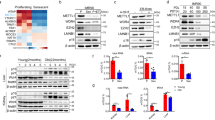We had previously found that knockdown of dimt-1 in the parental generation caused a significant misregulation of both transcription and ribosome binding to transcripts involved in the determination of adult lifespan in the eggs of progeny26. Presumably, all effects on transcription come as a secondary consequence of alterations in translation. To specifically examine which transcripts displayed altered binding by ribosomes after a decrease in DIMT-1 at later stages of life in the germline, we performed germline-specific Translating Ribosome Affinity Purification (TRAP)62,63 in four independent biological replicates from worms that were grown on empty vector (EV) control or dimt-1 RNAi. We used a flag-tagged RPL-4 driven by the germline-specific promoter mex-5, which has previously been shown not to have a negative effect on ribosome function63. We first validated that dimt-1 knockdown extended longevity in this strain (Supplementary Fig. 3c). We next analyzed the transcription changes in response to dimt-1 knockdown in post reproduction worms. Transcriptional changes would not be predicted to be direct consequences of manipulating the rRNA methylation; however, a natural consequence of changes in translation will lead to changes in transcription64,65. We found that 5765 genes were differentially expressed, with 3700 genes that were significantly upregulated and 2065 genes that were significantly downregulated upon dimt-1 depletion compared to the empty vector control (Supplementary Fig. 4a and Supplementary Data 1). Pathway analysis revealed increased expression of genes involved in longevity regulation, xenobiotic detoxification, TGF-β, WNT, and MAPK signaling pathways, as well as degradation pathways including proteasome, peroxisome, and autophagy genes (Supplementary Fig. 4b, c and Supplementary Data 1). Downregulated genes were enriched for protein processing, mTOR and FOXO/DAF-16 signaling pathway, and ribosome biogenesis genes (Supplementary Fig. 4d, e and Supplementary Data 1). These altered transcriptional pathways could help to explain the extended longevity in response to dimt-1 depletion, and the decreased expression of FOXO/DAF-16 and mTOR signaling pathways expression could help explain the daf-16 and raga-1 dependency of the lifespan extension (Fig. 3f, g). As RAGA-1 is a RAG GTPase that links amino acid sensing to the mechanistic target of rapamycin complex mTORC1, these findings suggest that raga-1 dependency is mediated by both transcriptional and translational changes induced by dimt-1 depletion.