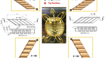 For example, for X/L = 0.20 and d/L = 0.12, the theoretical bifurcation point K0 is 0.8700, whereas the numerically solved thermal strain ratio K is 0.8705 at 3.728 W/cm2, which suggests the onset of undulation (Supplementary Fig. 18). Furthermore, modeling reveals bursts of energy output during each cycle in the undulation mode, whereas the oscillation mode yields a higher average kinetic energy output despite exhibiting lower energy maxima near the undulation–oscillation bifurcation point (Fig. 3F and Supplementary Text 2.3). Specifically, the peak output efficiency of undulation is more than twice that of oscillation, whereas its average output efficiency is only 0.681 times that of oscillation (Supplementary Fig. 19). This trade-off is akin to the behavioral strategy of Gymnura micrura, which employs undulatory swimming at lower speeds to enhance instantaneous output and maneuverability during predation or reproduction, and shifts to oscillatory swimming for high-speed cruising19.