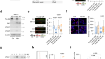 To determine whether RNF25 expression correlates with other fork reversal or fork protection factors in pathological settings, we analyzed gene expression datasets from The Cancer Genome Atlas (TCGA). In the three tumor types that we interrogated, Pancreatic Ductal Adenocarcinoma (PDAC) (Fig. 6f), Lung Adenocarcinoma (LUAD) and Breast Invasive Carcinoma (BRCA) (Supplementary Fig. 5f, g), RNF25 and REV7 expression were the most closely correlated, with a significant positive Pearson’s correlation coefficient (Supplementary Fig. 5h). The co-expression of RNF25 and REV7 in patient tumors is also consistent with our results showing that RNF25 and REV7 cooperate in the same pathway to promote DNA replication stress tolerance.