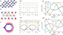 For our minimal model Hamiltonian, the \({\chi }_{S}^{zx}\) is the only finite component of the symmetry-constrained rank-2 tensor (Fig. 2d). The maximum value of the χS increases with tJ due to the increasing anisotropy between the spin channels. The particle-hole symmetry evidenced in the response (Fig. 2d) is in agreement with the model band structure shown in Fig. 2b. In order to compare to other systems, we look at χS within (i) a non-coplanar AFM model with broken TRS with 3Q spin-texture33 and (ii) a two-dimensional electron gas (2DEG) with relativistic Rashba SOC. For the former case, the non-equilibrium susceptibility, integrated over the unit cell, is reported to be \({\chi }_{S}^{3Q-AFM} \sim 0.5\hslash\) Å/V33. The non-equilibrium spin density for the Rashba 2DEG is given by δSR/eE = αRm0/ℏ2πΓ6. We set Γ = 0.01 eV, αR = 10−9 eVm as the typical Rashba strength expected in transition metal heterostructures41,51, with m0 being the free electron mass. This gives an effective Edelstein response \({\chi }_{S}^{R} \sim 0.4\hslash /V\) Å. Already at the simple model level, the strength of χS of the minimal p-wave model is substantially larger than that of the reported non-relativistic non-coplanar 3Q-AFM and relativistic Rashba 2DEG model.