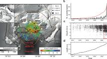 On the other hand, although the complete characterization of the magma chamber geometry is beyond the scope of this work, the surface projection of the recently active magma chamber could be smaller than the existing caldera structure, implying that the thickness of the active magma chamber would encompass a wider depth range. The availability of such a large volume of magma, concurrently with a deep-rooted network of volcano-tectonic faults, could also represent the predisposing conditions viable for the occurrence of large (M ≥ 5–6) eruptions8, in which the gravitational collapse of overburden blocks would allow a larger volume of magma to be erupted39,40.