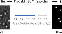 In the output module, a group of convolutions is used to transform features to final outputs. Similar to DECODE, the outputs include a pixel-wise probability map p that indicates whether an emitter exists, continuous subpixel offsets \(\Delta x,\,\Delta y\) relative to the pixel center, axial distance \(\Delta z\) relative to the focal plane, brightness \({photons}\), and corresponding uncertainties. For the post-processing, we first identify pixel candidates as local maxima with \({p}_{k}\) > 0.3 or non-maximum with \({p}_{k}\) > 0.6. This dual-threshold strategy ensures the detection of emitters in adjacent pixels, even when \({p}_{k}\) is not a local maximum. Subsequently, the probability values from the four nearest neighboring pixels around each candidate are aggregated to form an enhanced probability map. This map is then thresholded at 0.7 to generate a binary detection map. The pixel-wise detections are used to index all predicted offsets and uncertainties, thereby forming the final localization lists. We used SMAP24 to further process and render the localizations returned by LiteLoc.