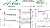 Molten-salt solid electrolytes with a melt infiltration process using Li2OHCl antiperovskite10 materials, composed of rare-element-free and environmentally friendly raw materials, have been proposed by Xiao et al.11. These antiperovskite materials exhibit low melting points (523–573 K) and high wettabilities toward oxides and metals, facilitating penetration into electrode voids. However, Li2OHCl undergoes a structural phase transition from a low-temperature orthorhombic phase (o-Li2OHCl) to a high-temperature cubic phase (c-Li2OHCl) at approximately 345 K. The o-Li2OHCl has low ionic conductivity (approximately 1 × 10-7 S cm-1)12,13, rendering room-temperature ASSB operation problematic.