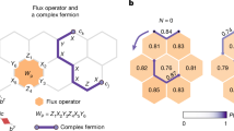 The third configuration was employed for the L = 22 spin crystal (N = 27 ion chain) as depicted in Supplementary Fig. 8c. In this setup, we detuned Δ = −45 × 2π kHz below the zig-zag mode, set J = 0.2 × 2π kHz and achieved relatively uniform nearest neighbor (NN) spin bonds by configuring the relative Rabi frequencies as Ωj/Ω1 = {1.0, 0.59, 0.59, 0.4, 0.47, 0.37, 0.50, 0.44, 0.60, 0.51, 0.68, 0.54, 0.68, 0.52, 0.62, 0.45, 0.53, 0.39, 0.49, 0.42, 0.61, 0.60∣1 ≤ j ≤ 22}. The calculated \(\bar{J}(d)\) is presented in Supplementary Fig. 8d (squares) and can be approximated by the curve \(\bar{J}(d)=2.7J\times {e}^{-| i-j| }\). This configuration was used in generating Fig. 2 and Supplementary Fig. 3. In this configuration, we apply the same staggered-phase correction to the array of individual optical beams as in the first configuration, to make the Jij coupling sign uniform.