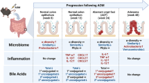Previous studies showed that the occurrence rate of CRC increased after cholecystectomy5,6,7. Here, we did find that 2 out of 52 patients after cholecystectomy developed CRC, implying an upward trend of CRC incidence after cholecystectomy. However, the difference we found in the incidence of CRC between cholecystectomized and healthy subjects was not significant, which could be explained by a small sample size. Notably, in our study, we found that cholecystectomy exacerbated the oncogenesis of CRC in both the AOM/DSS and APCmin/+ mouse models. It is well known that human colorectal cancer arises from the intricate interplay of both genetic and environmental factors. The APCmin/+ model predominantly serves to simulate genetically-driven CRC. In contrast, the AOM/DSS model operates through chemical induction. The mouse models were established to mimic certain aspects of CRC oncogenesis after cholecystectomy. Although they may not fully replicate the human situation, they provide valuable insights into the potential mechanisms. Importantly, we observed that cholecystectomy exacerbated early and late colitis in mice, and colorectal tumorigenesis developed much earlier after cholecystectomy. Given that the AOM/DSS model places great emphasis on inflammation-related carcinogenesis, we employed this model in the following study, which involved fecal microbiota transplantation, single bacterial colonization, and bile acid supplementation.